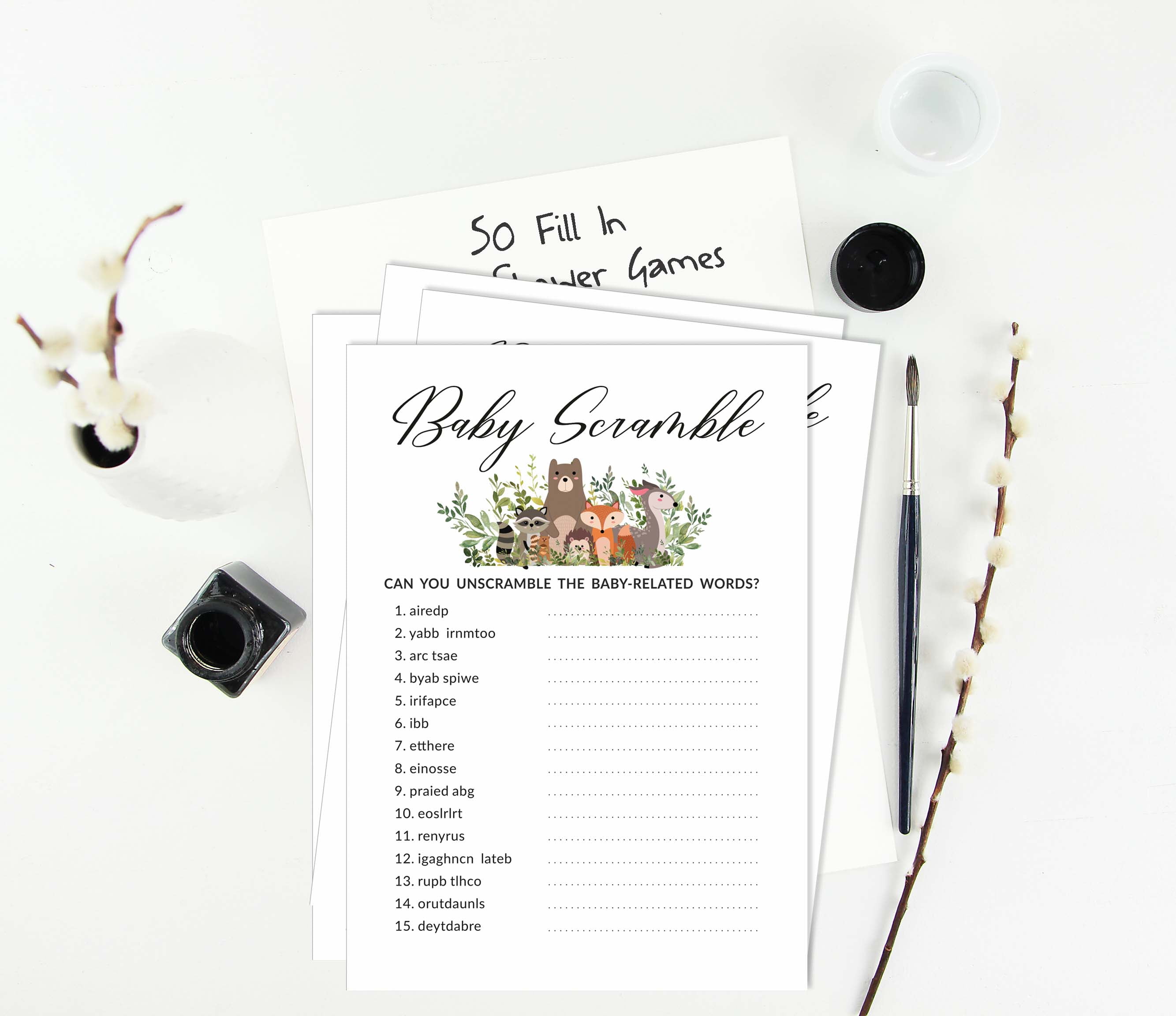 Inkdotpot Set Of 50 Baby Showerword Scramblegame Cards Gender Neutral Leaves Animals Party Supplies Fun Baby Shower Game Favors Walmart Com